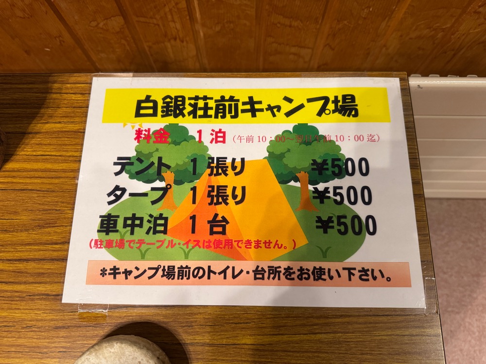 白銀荘ではキャンプも楽しめる!のですが・・・