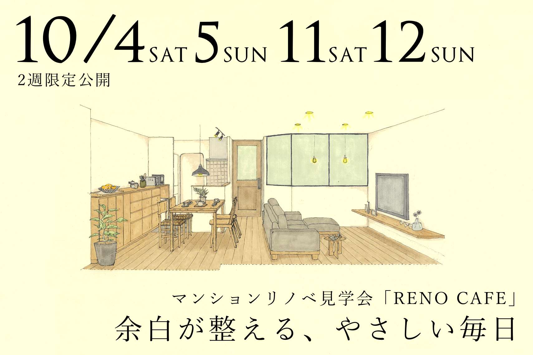 今回は来月10月4、5日、11、12日と2週にわたって開催する完成見学会「RENOCAFE」(オーナー様のご厚意で開催させていただきます)。