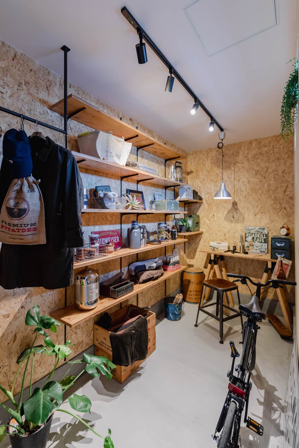 スノーボードやフェスイベント、釣りなどアウトドアな趣味が多いご主人の裕麻さん。玄関と隣接する大きな土間収納は、そんな裕麻さんの心をワクワクさせてくれる大人の“遊び場”とも言える趣味の空間です。ディスプレイされたお気に入りのアウトドアグッズを眺めたり、手入れをする時間はきっと幸せであるに違いないでしょう。