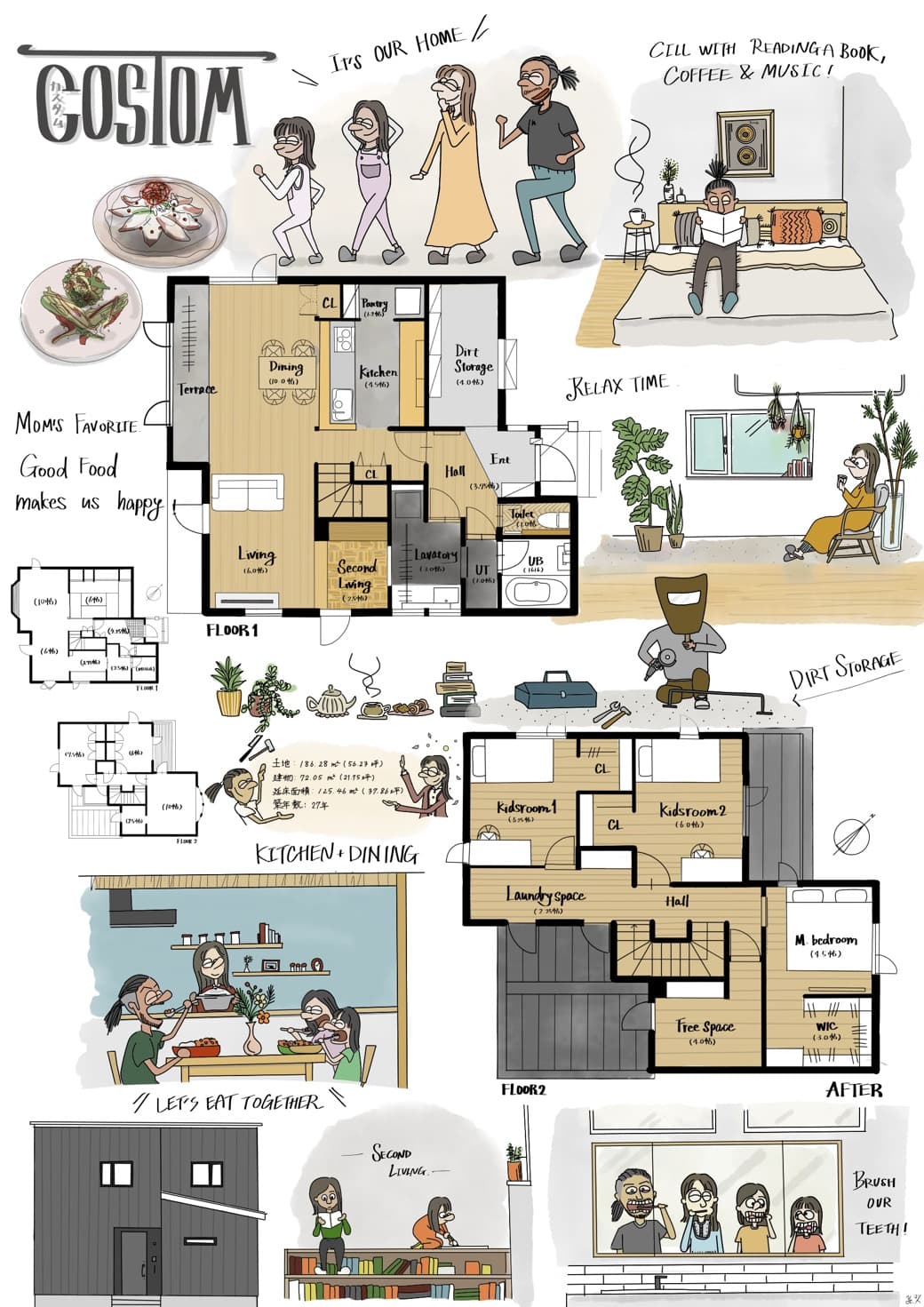 暮らしのテーマは「Custom」。奥さんの光希さんのご両親から受け継いだご実家に、小森さんご家族らしい色を添えてリノベーション。更にお引越し後には、ご主人の裕麻さんのDIYによって一層快適な空間に姿を変えてゆくことでしょう。