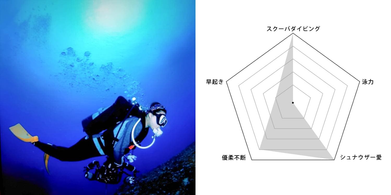 深田さんの趣味は、何と言ってもスクーバダイビング。海に潜り海中の写真を撮る時間が、暮らしを豊かにしてくれるのだそうです。