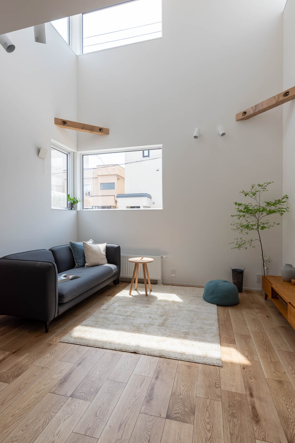 吹き抜けからの光が心地よく、ずっとソファでくつろいでしまいそうです!