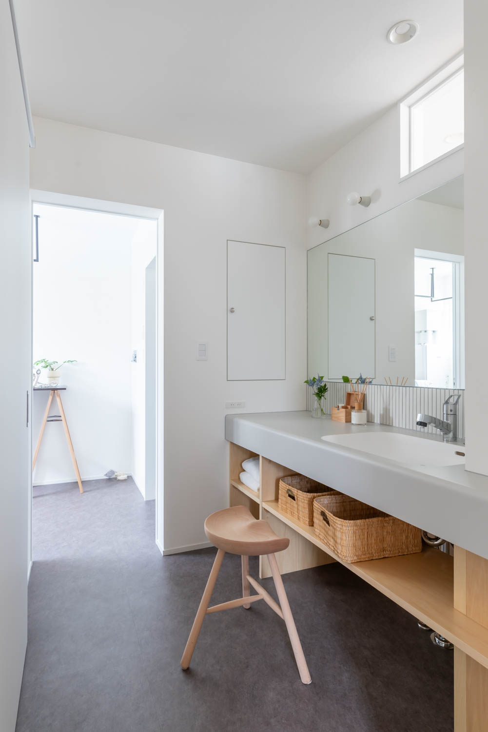 奥さんの真沙子さんが特にこだわり、お気に入りの場所となった洗面スペース。