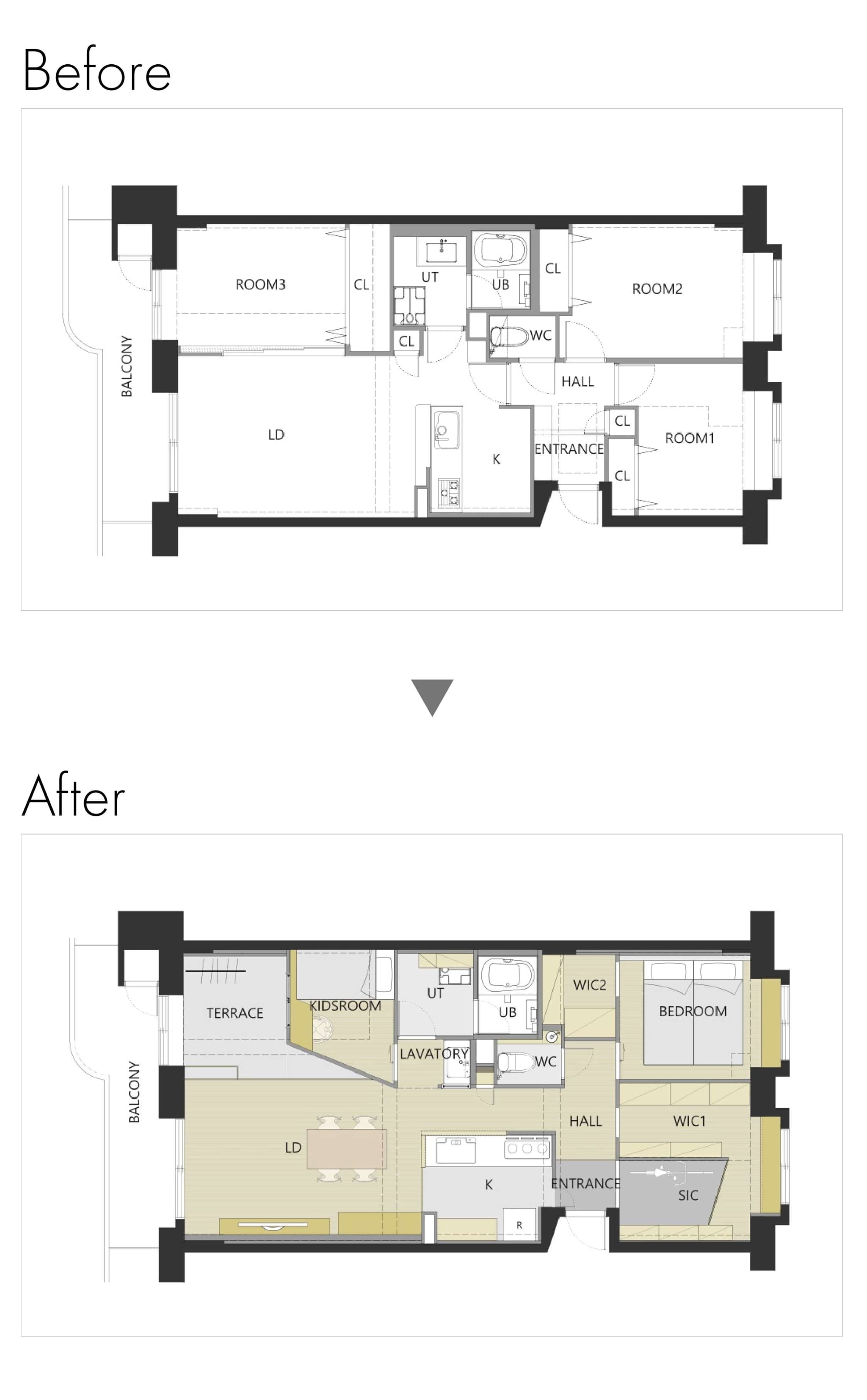 また同じマンション内にはもう一つのモデルルーム「kiro」 も公開しています。「kiro」は“子どもが巣立った後の夫婦が、自分たちの時間をじっくり味わうための住まい”として設計されています。二つのマンションの体験いただき、リノベーションのヒントにしていただければ幸いです。